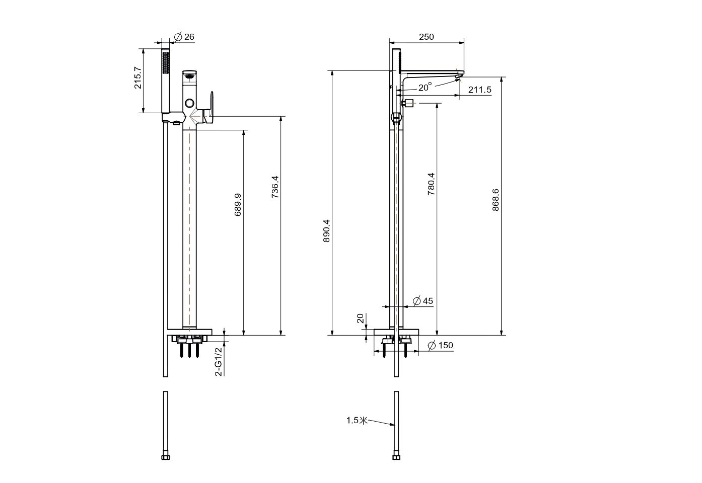 Длина шланга для лейки (см): 150