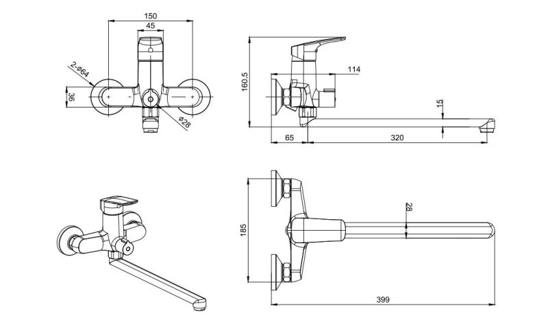 • благодаря длинному изливу, возможность использовать одновременно для ванны и раковины