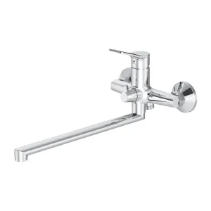 Универсальный длинный излив позволяет использовать смеситель как для ванны так и для рядом стоящей раковины. Поворотный переключатель с излива на ручной душ -максимум комфорта и надежности в использовании.