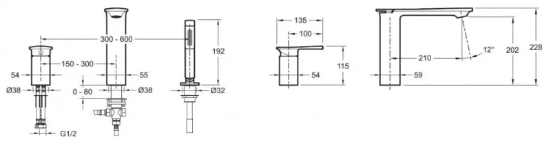 Излив    Встраиваемый монолитный излив 210 мм