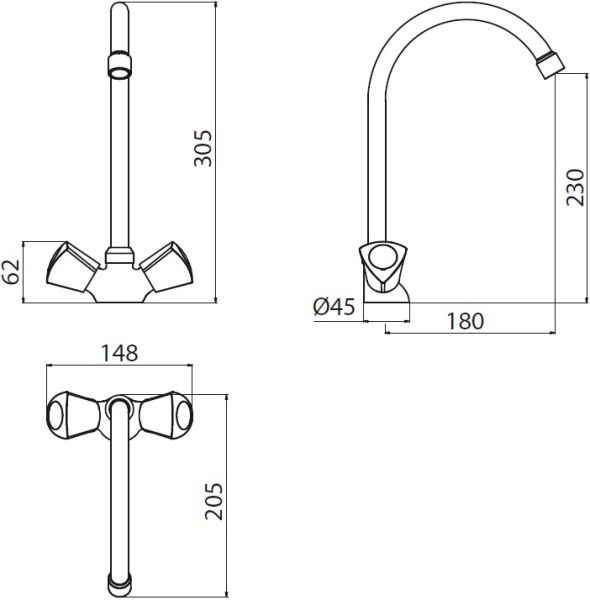 • Двухвентильное управление с плавным и мягким ходом рукояток позволяет точно настроить температуру и мощность потока воды.
