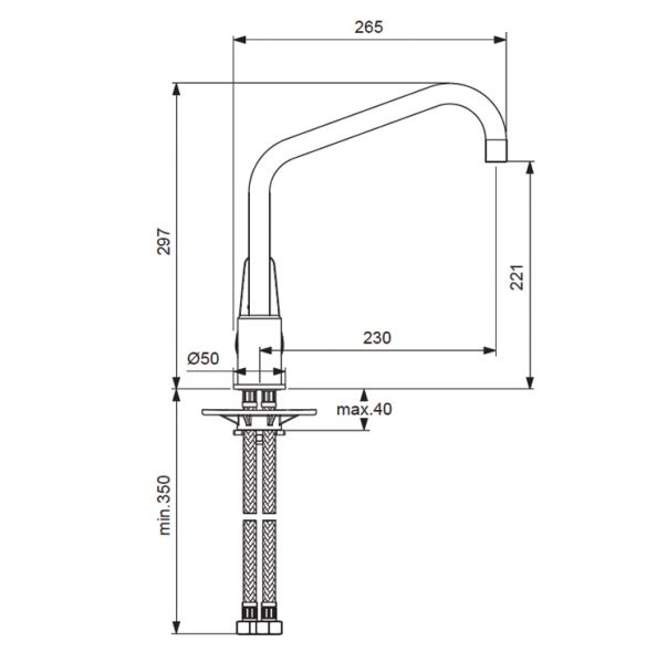 • Высота смесителя: