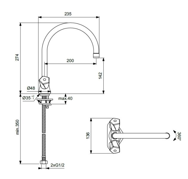 Длина излива, мм: 200