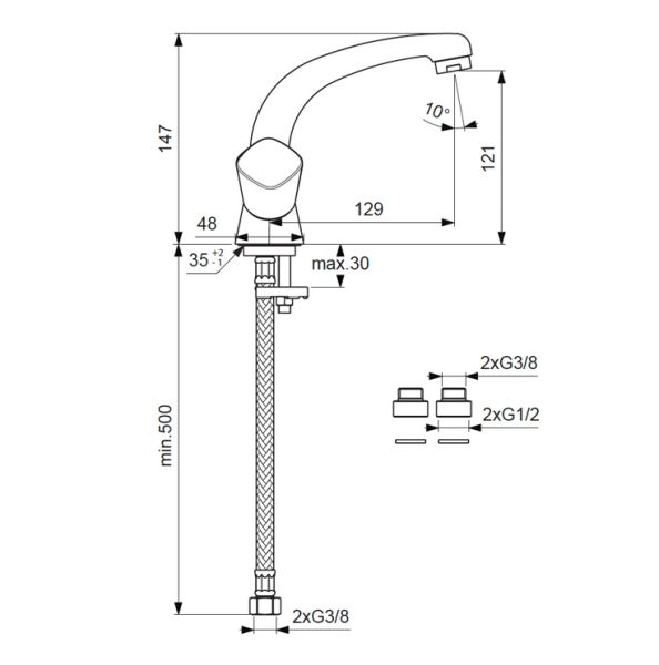 • Высота смесителя: