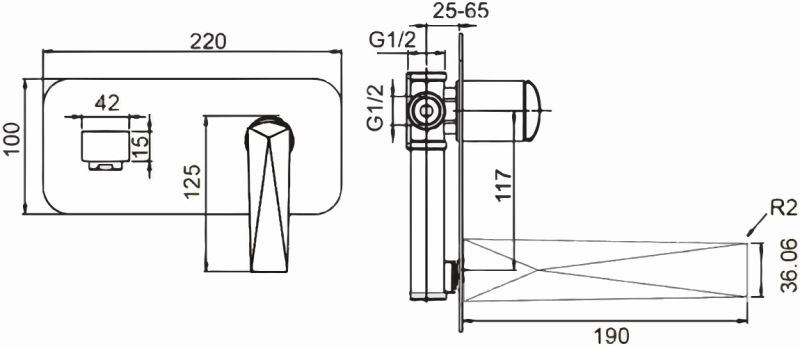 Смеситель встраиваемый Boheme Venturo для раковины хром 375