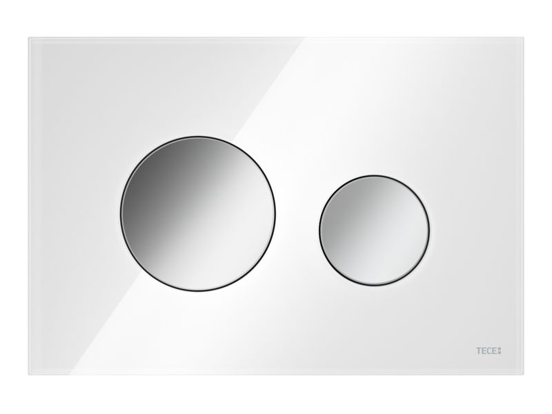 Панель смыва для смывных бачков TECE, фронтальная или верхняя установка. Плоская стеклянная панель смыва с двумя установленными на пружинах клавишами смыва. Подходит для монтажа на уровне стены вместе с монтажной рамкой унитаза (например: 9240649). Совместима с контейнером для гигиенических таблеток Размеры (Ш x В x Г): 220 x 150 x 11 мм Монтажная рамка для установки панели смыва на уровне стены в комплектацию не входит.