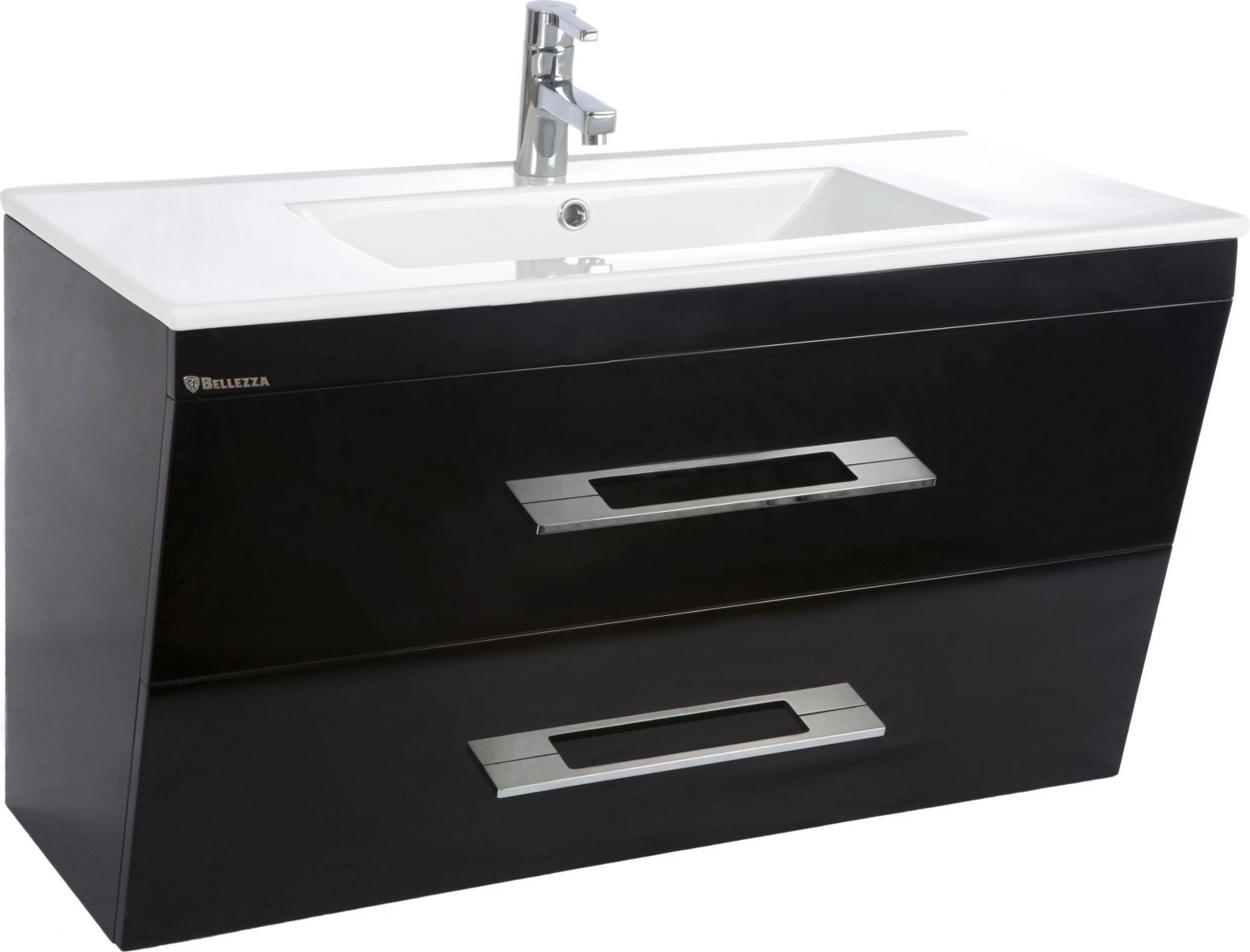 Тумба Bellezza Берта шириной 90 см в черном глянцевом исполнении — это смелое решение для современных ванных комнат, где дизайн встречается с функциональностью. Модель с интегрированной раковиной и двумя вместительными ящиками демонстрирует внимание к деталям: от премиальных материалов до продуманной эргономики.