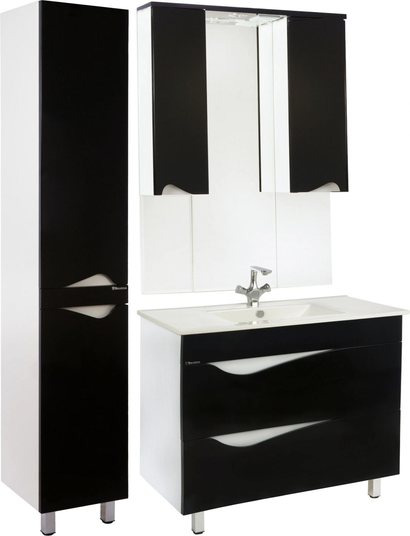 Тумба Bellezza Эйфория шириной 105 см в черном глянцевом исполнении — это смелое дизайнерское решение для просторных ванных комнат, где важны выразительность, функциональность и безупречный внешний вид. Модель с интегрированной раковиной и двумя объемными ящиками сочетает в себе глубину черного глянца, практичность хранения и устойчивость к влажной среде.