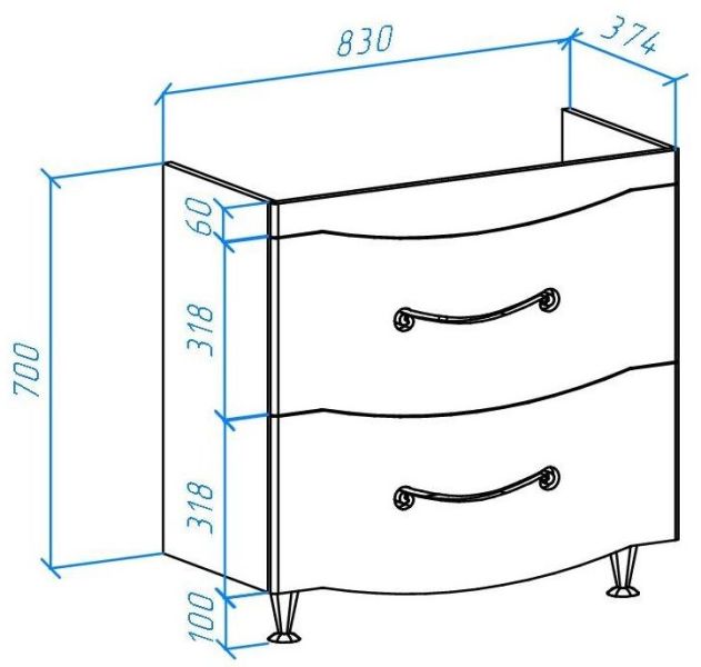 Тумба для комплекта Bellezza прекрасно впишется в дизайн любой ванной комнаты, будь то компактная ванная в многоэтажном доме или большой санузел в загородном коттедже. Напольный способ установки производится непосредственно на пол, при этом конструкция максимально устойчива при серьезных физических нагрузках.