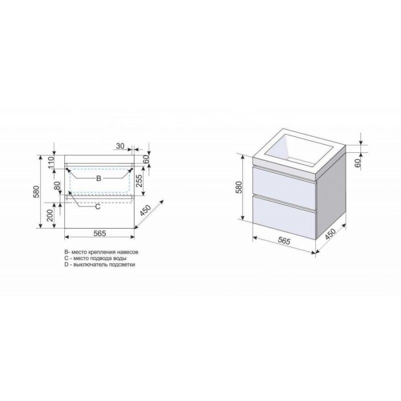 Тумба под раковину Style Line Даймонд 60 СС-00000500