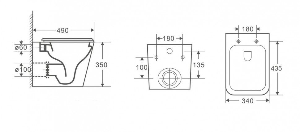 • Прилегание унитаза к стене: