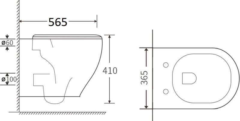 - Прилегание унитаза к стене:вплотную