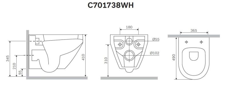 • Прилегание унитаза к стене: