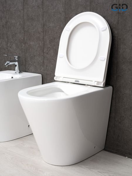 Cortado — стильная коллекция округлых унитазов и биде со скосом к низу. Испанское качество гарантирует надежность, а европейская сертификация подтверждает их качество. Приставной безободковый унитаз GiD TRS-263 — стильная напольная модель с горизонтальным выпуском предназначена для установки со скрытым бачком. Выполнен из высококачественной керамики белого цвета с глянцевым покрытием, что обеспечивает долговечность и уникальный внешний вид. Крышка унитаза изготовлена из прочного дюропласта и оснащена функцией микролифта, которая обеспечивает плавное и бесшумное опускание.