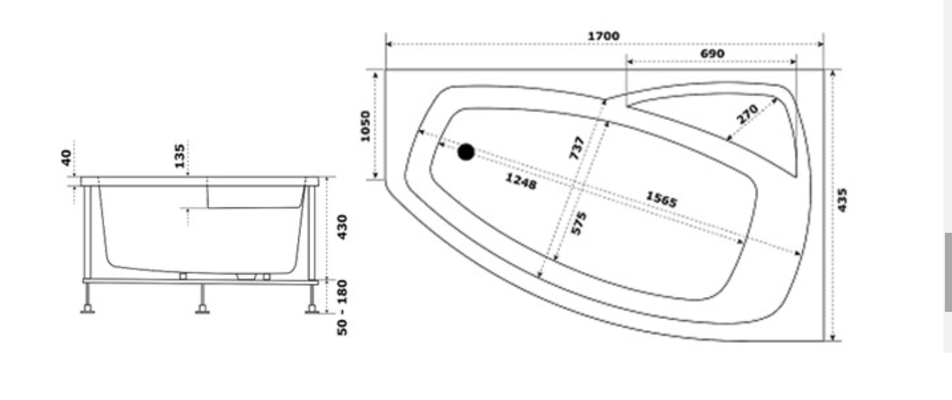 Ванна акриловая Bas Камея 170x105 правая купить