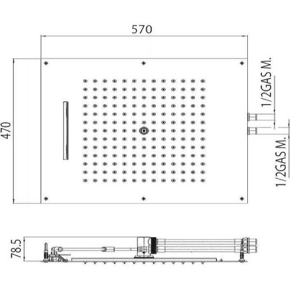 - Размер верхнего душа, см:57
