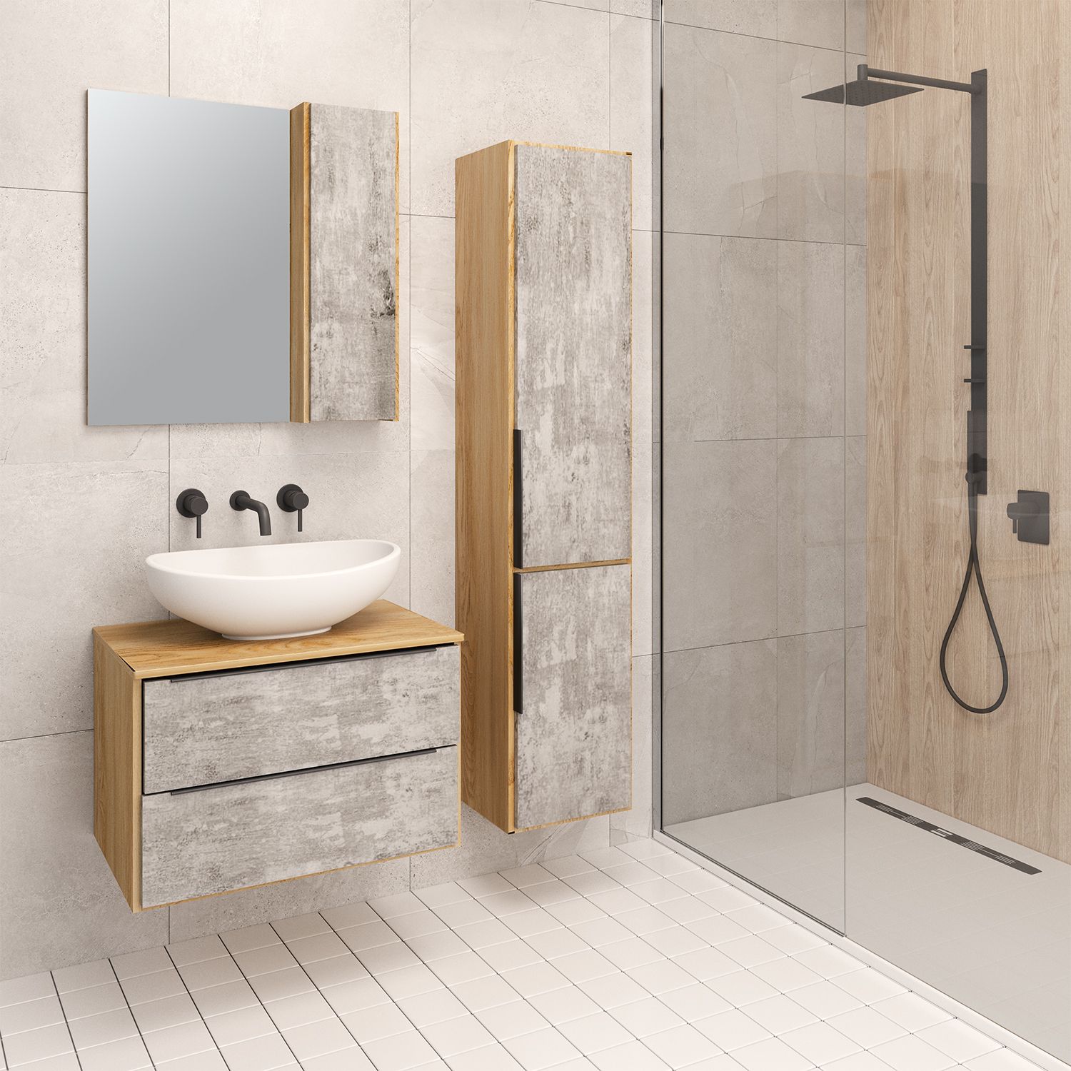 Зеркальный шкаф Runo дуб серый Мальта 70 (00-00001102)