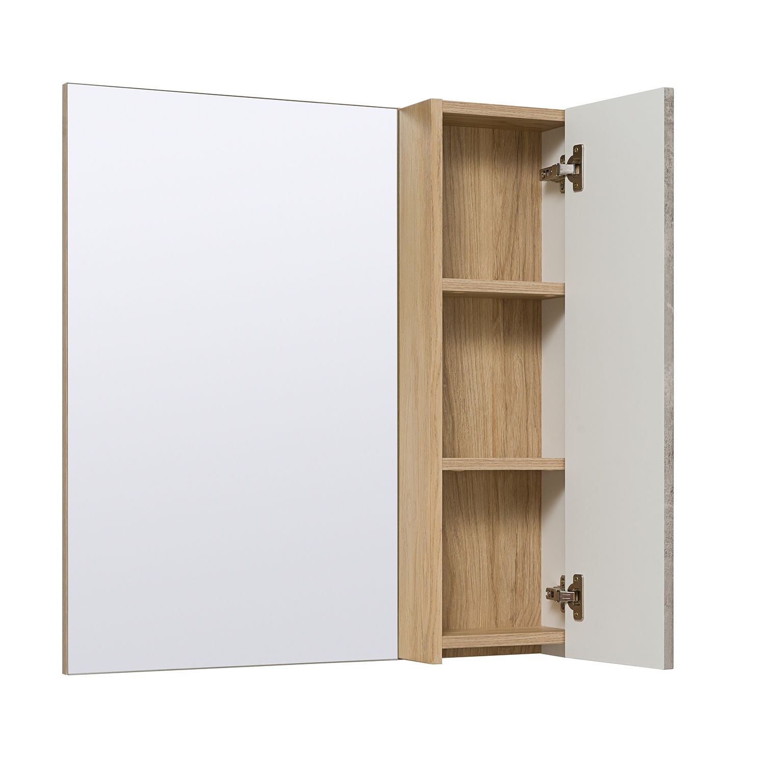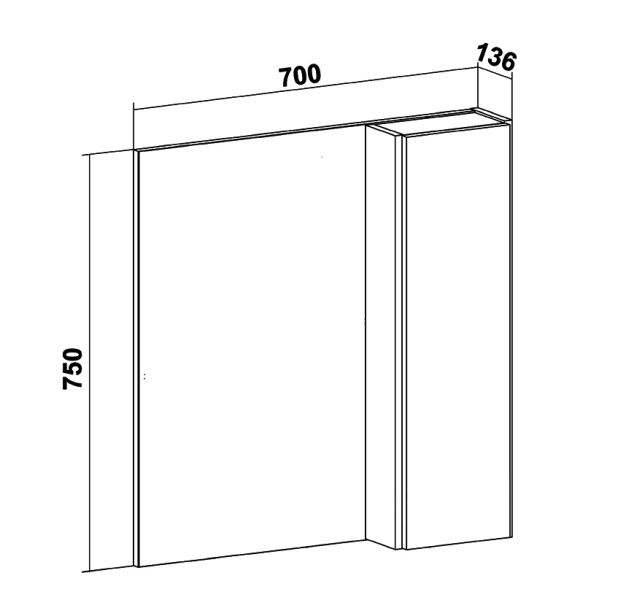 Зеркальный шкаф "Мальта" 70см без подсветки и с системой хранения. Справа или слева (зависит от установки) шкафчик с распашной дверкой, за которой две внутренние полки. Шкаф универсальный (для смены ориентации изделие поворачивается на 180 градусов).