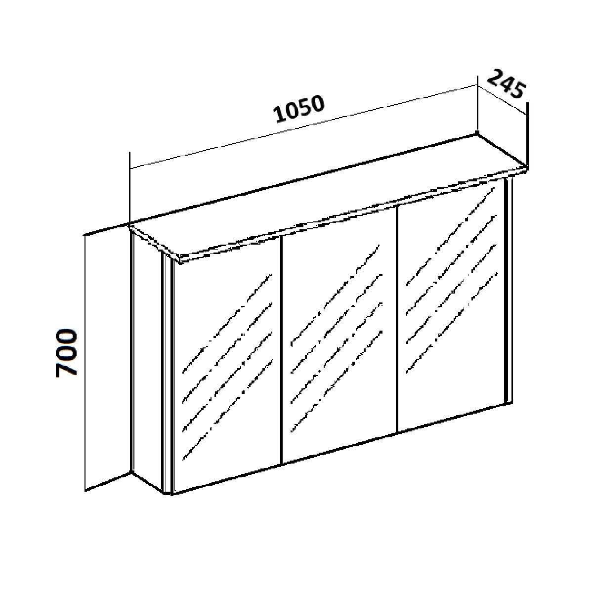 Зеркальный шкаф c тремя распашными зеркальными фасадами. Комплектуется светодиодной подсветкой, встроенной во врезной алюминиевый профиль, и розеткой с выключателем (внутри шкафа). Петли со встроенным доводчиком. Внутри каждого отделения шкафа по 2 встроенные полки.