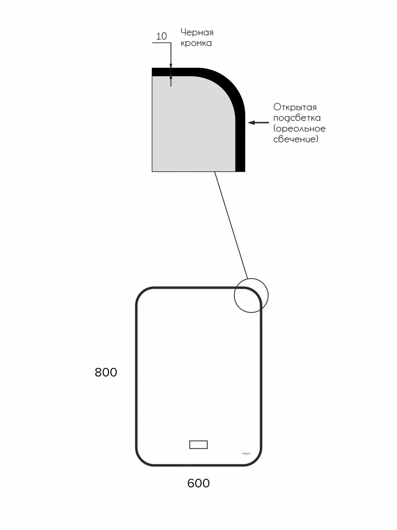 Зеркало Reflexion Shadow с фоновой подсветкой, сенсором, диммером, часами и подогревом 600х800