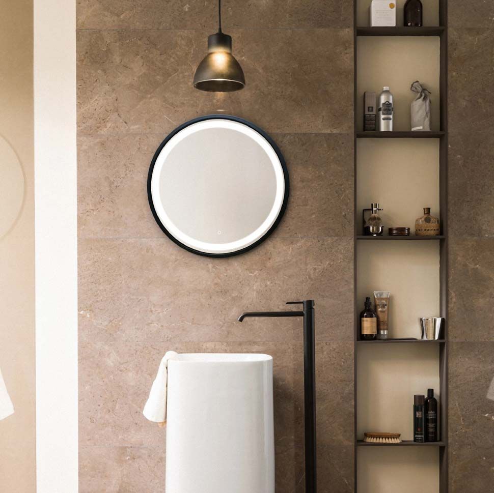 Зеркало с LED-подсветкой в стильной раме черного цвета. Модель сделана из стекла высшего качества M0 (влагостойкое, минимальные оптические искажения). Изделие оснащено сенсорным выключателем с функцией плавного диммирования, с запоминанием последнего значения. Короткие касания светящейся области включают/выключают подсветку, длительное касание меняет яркость свечения. LED-подсветка выдерживает до 50 тыс. часов работы в непрерывном режиме. Экологически чистый продукт выполненный по стандартам ЕС.Материал рамы - пластик (цвет черный)